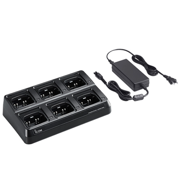 ICOM Six bank charger with US plug AC adapter and cups installed