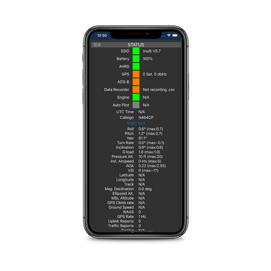Each Astro+ is meticulously calibrated for optimal performance even during aerobatics. The AHRS data refreshes at 14 frames per second, the max rate of turn is 500 deg/sec, and the attitude is completely independent of GPS