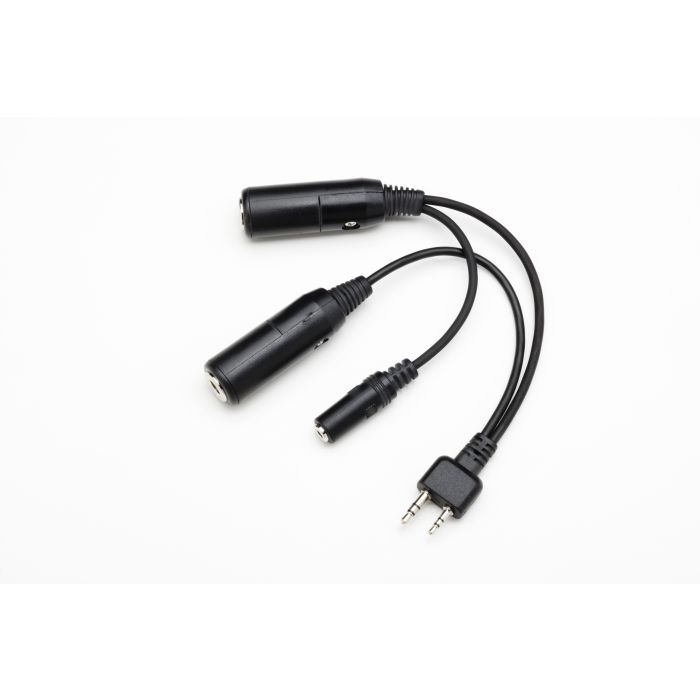 Twin sockets accepts standard .25” (PJ-055) and .206 (PJ-068) plugs converting to ICOM A4 straight angle plug